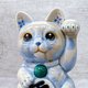 ポジティブなエネルギーと縁起の良い祝福をもたらします。💸🐾 招き猫の穏やかで愛らしい表情、温かく輝く大きな黒い瞳は、今にも幸せと富をもたらしてくれそうで、喜びと心の平安をもたらします。全体的な配色は、爽やかで上品な青と白の融合です。