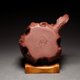 塊状の内部には青緑色の「鶏眼」や「猫眼」が見られ、これらは段泥の粒子を含む紫泥の証です。