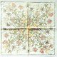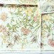 この美しいハンカチーフは、柔らかいパステルカラーで豪華な中央の花の配置が特徴です。バラ、ユリ、繊細な花々が、優雅に流れる葉と調和しています。このアートワークは、派手すぎることなく際立つ、エレガントでロマンチックな雰囲気を作り出しています。