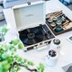 - 多機能レコードプレーヤー、ポータブルスーツケースデザイン。 Bluetooth対応で、スマートフォンやタブレットを音源として接続できます。 ステレオデュアルスピーカー内蔵。 33/45/78回転の7、10、12インチレコードを再生可能。 アップグレード版ではBluetoothイヤホンやスピーカーへの接続も可能に。レコード、USB、Bluetoothモードでは、レコードが回転し、より雰囲気のある空間を演出します。 内蔵バッテリーで10時間の長時間再生が可能です。