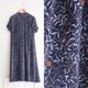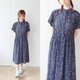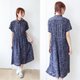 - 春夏日本製昭和レトロ中山襟花柄紺半袖ヴィンテージドレス