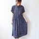 春夏日本製昭和レトロ中山襟花柄ダークブルー半袖ヴィンテージドレス-D681