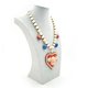 - このユニークなネックレスは、香港のファッションデザイナーTIMBEE LOによって丁寧に手作りされており、精巧な技術と創造性を誇っています。各作品は一つ一つがユニークで、赤と青のハート型ビーズは手作業で塗装されており、生き生きとした色合いと