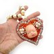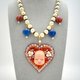 このユニークなネックレスは、香港のファッションデザイナーTIMBEE LOによって丁寧に手作りされており、精巧な技術と創造性を誇っています。各作品は一つ一つがユニークで、赤と青のハート型ビーズは手作業で塗装されており、生き生きとした色合いと個性的な特徴を示しています。ネックレスの中心には立体的な人形の顔のデザインがあり、周囲を輝くフェイクパールとラインストーンが囲んでおり、全体のルックに贅沢感を加えています。