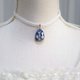 ドロップ型のレジンにお花を二輪咲かせた可憐なレジンを、サテンリボンにタティングレースで装飾を施したチョーカーに仕上げました。
