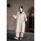 秋に欠かせないのは、やはりトレンチコートです。暖かく、飽きのこないデザイン。ご覧の通りの色は、白でも生成りでもなく、染め上げた糸を調合して作られた、温かみのあるアンティーク調の色合いです。まるで古びた書物の黄ばみのように、歳月を経て刻まれた古跡を思わせます。時間は再現できませんが、記憶に残すことはできます。経糸と緯糸も異色ではなく、同じ糸を使用することで、古びたベージュの色調が、より深い思い出の色を醸し出しています。