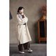 前立ては裾まで開き、レトロな水牛の角ボタンがノスタルジックな質感を添えます。全体的なシルエットは、中性的ながらも女性らしい雰囲気を失わず、ゆったりとした身頃が着丈に向かって緩やかに絞られ、美しいコクーンシルエットを形成します。そして、裾の両サイドに入ったスリットが、ラインの純粋さを少しだけ打ち破り、より軽やかな印象を与えます。