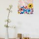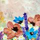 このアクリル画は、柔らかな色彩で百花が咲き誇る瞬間を描き、