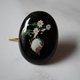 天然石 黒瑪瑙とコスモスとスズメのポニーフック(金沢箔24K入り)