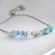 - シェイプド シャイニング ダイヤモンド x アクアマリン x 天河石調節可能なクリスタル ブレスレット。氷を透過するシャイニング ダイヤモンドは、浄化し、コミュニケーション スキルを向上させ、幸運と平和をもたらすブルー緑色の天然クリスタルとペアになっています。水晶のブレスレットは、個人の好みに合わせて自由に調整でき、身に着けやすく、軽くてかわいいです。