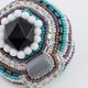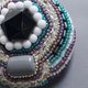 小さな作品を作るとき、まずメインのビーズを選びます。 そのビーズがいちばん美しく見えるように、隙間なく刺繍を重ねていくと── 色とりどりのビーズたちが、まるでおしゃべりしているような、にぎやかな仕上がりになります。