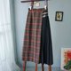 →カレッジ風レンガレッドのチェック柄切り替えブラックプリーツスカート