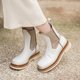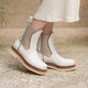 - 上質なヨーロッパ産カーフレザーとラムレザーを使用。 スクエアトゥと厚底で、カジュアルにもきれいめスタイルにも合わせやすい一足です。 伸縮性のある筒周りが、より快適で足にフィットする履き心地を叶えます。 エアクッションソールで快適さも抜群です。
