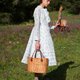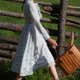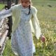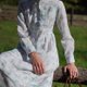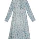 クラシックなレースカラー、裾の3つ折りのディテール、水彩画の青と緑の花柄が、女の子の優雅さを表しています。