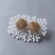 つややか、きらきら、マット——ビーズひと粒ひと粒が異なる表情を持ち、まるでごま団子のようなチャーミングな仕上がりに。 細かなビーズをたっぷり使用していますが、とても軽く、裏側から接着剤で丁寧に固定しているため、取れにくくなっています。