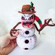 PDF 編みぐるみパターン ホラー雪だるま。怖いクリスマス人形 DIY。忌まわしい雪だるまの不気味なぬいぐるみ。