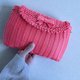 リボンをさりげなくあしらい大人の可愛さを演出。蓋の周りはうろこ編みの模様を入れて装飾しました。