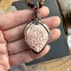 天然石と純銅線をワイヤーラッピングで組み合わせ、アンティーク加工を施した後、研磨することで模様に深みとコントラストを与えています。
