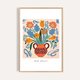 本作は対照的な色彩構成で、自由奔放な野の花々を描いている。筆致はやや子供じみた手描き風で、色彩は生き生きと伸びやかに、コラージュのようなリズムを生み出している。画面中央に配されたレッドの幾何学模様の花瓶が、花の雰囲気を一層引き立てている。