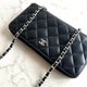 【LA LUNE】廃盤ヴィンテージバッグ シャネル 黒 WOC レザーバッグ ショルダーバッグ クロスボディバッグ 中古セカンドバッグ 長財布