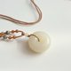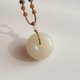 - 天然和田玉ブレッドリング平安扣ペンダント、ドーナツ型、アイスベースの蓮根パウダー素材、均一な色合い、きめ細やかで柔らかな質感、純粋な手彫り、美しい砂糖菓子のような和田玉の手編み紐付き。サイズ:25.7×12.3mm。