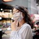 個性的なおしゃれが楽しめる幾何学模様柄のマスク。華やかなカラーの組み合わせで、春のコーディネートにもぴったり。