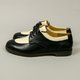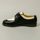 2. ブラックのオイルワックス牛革に、履き口とアッパーのU字部分にあしらわれたオフホワイトの牛革が、レトロでエレガントな佇まいを演出します。