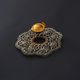 シルバーを使用し、ゴールドフィルドが中心に配されたこのブローチは、デザイナーの熟練した手技によるかぎ針編みで丁寧に作られています。それぞれの線が交わり合う点で、繊細さと強さのバランスが取れており、見る角度によって異なる表情を見せるデザインが特徴です。