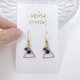 イエロー製スパイラルイヤリング、イエローアクセサリー、天然ラピスラズリ、天然パープル