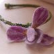 - 草緑のリネンを背景色に、ブルー花のリボンを追加し、ピンクとパープルの菖蒲に合わせます。大きいですが、頭にかぶっても邪魔にならず、春先のカラフルな雰囲気に溢れています。公園。