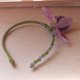 草緑のリネンを背景色に、ブルー花のリボンを追加し、ピンクとパープルの菖蒲に合わせます。大きいですが、頭にかぶっても邪魔にならず、春先のカラフルな雰囲気に溢れています。公園。