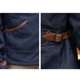 RED TORNADOはMFデニムジャケットからインスピレーションを得て、このアイテムをリリースしました。外側には12ozのデニム生地を使用し、背中のプリーツと袖口のアジャスターは、古き良き時代のワークウェアの実用性を引き継いでいます。レザーの矢印は当時としては珍しいディテールで、両サイドのウエストベルトでウエストサイズを自由に調節できます。裏地にはアメリカ北東部で有名な高品質のTroy Mills Blanketウールブランケット生地を使用しています。このウール混紡のテクスチャーは、狩猟、林業管理者、鉄道請負業者の冬用ジャケットによく使われていました。このブランケット生地は、一般的な作業員が着用していたコットン裏地よりも厚手で暖かく、織り目が立体的で、職業上の差別化も図られていました。ウールを50%含むこのブランケット生地は、彩度の低い青と黄色の織り目と細かな光沢があり、古いキャンプブランケットのようなスタイルを醸し出しています。