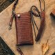 **商品名:** Hang-onトラベルスマホストラップポーチ - 手縫いレザー版