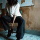 デモンストレーションブルーM / ウエスト位置が低く、丈も折り返せる丈がちょうど良い