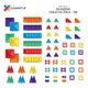 - サイズ:32.6 x 21 x 8.5 cm;大きな正方形6枚、小さな正方形36枚、正三角形12枚、直角三角形12枚、二等辺三角形12枚、中空窓型正方形6枚、中空正方形6枚、長方形6枚、フェンス型正方形6枚を含む;最小の正方形は1枚あたり約7.5 x 7.5 cm