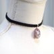 ドロップ型のレジンにお花を二輪咲かせた可憐なレジンを、ベルベットリボンにタティングレースで装飾を施したチョーカーに仕上げました。