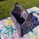 - デニムファッションタイム! オリジナルの折りたたみ式ピクニック バスケット - ワイン テーブル。 特にピクニックシーズンのあなたに。 無垢の松材、軽量、キャンプ用テーブルは1分もかからずに展開します。 デニム風。 ボタン付き - スタッズ