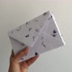ヤグルマギクの花びらを加えた再生紙で作った花紙封筒です。紙は私が手作業でリサイクルしたオフィスの古紙を100%使用しています。