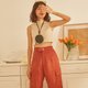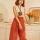 - Highestjump Jinnyズボン(赤茶色) ファーボール、ディテールストッパー スモーキーウエスト24-28「ヒップ39」