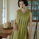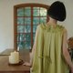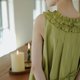 - ネックラインの二層ファンガス レースで、肩、首、顔の形を整えます 前身の折り紙形状、手押しプリーツ トレンドを活かして裾上げ、自然なドレープ 夏に涼しげな松葉緑 ウエストを後ろで結び、「緩め」または「締め」が可能