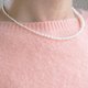 小珠でもツヤ感あるパールをネックレスにしているので、顔周りが華やかに感じられ気分も上がるようなモダンなネックレスです。気負わず日常使いしたくなるデザインがいつものコーディネイトにエッセンスを添えてくれる心強いパールアクセサリーです。
