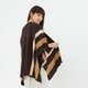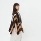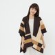 This color block poncho is spun from a warm blend of wool, along with smooth touches.