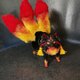 火のキツネのサイズ: 長さ 22 cm (8.6 インチ) (鼻から尾の先まで)、高さ 9 cm (3.5 インチ) (耳の先まで)、肩甲骨の高さ 7 cm (2.8 インチ)。各ディテールは、ポリマー粘土、高品質のフェイクファー、アクリル絵の具を使用して手作りされています。型は使用されていません。キツネの美しい金色の目は、ジュエリーガラスで手作りされており、動かすたびに注目を集めます。目を引くほどです。