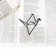 - 折り紙の鳥メタルブックマーク — 書籍と静かに向き合うひとときのためにデザインされた、ミニマルで幾何学的な読書アクセサリー。レーザーカットされた金属製で、スリムなシルエットはページを傷つけることなく、そっと挟むことができます。