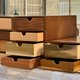 当初、引き出しは全てダークウッドカラーに塗装し、統一規格とする予定でした。しかし、デザイナーが試作品を見た後、無垢材の自然な色合いの美しさに完全に魅了されました!異なる樹種の天然の木目と色合いが、これほどまでに調和し、各引き出しが大自然から生まれたユニークな絵画のようでした。