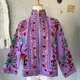チェーンステッチなどを何層にも重ねて描く、繊細で力強い手仕事です。