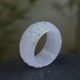 - 【名称】アイスジェイド白翡翠彫刻リング 【サイズ】国際規格14号 内径18.1mm 幅10.6mm 厚み3mm 【原産地】ミャンマー 【色】白 【備考】天然ミャンマー産翡翠A貨 【品番】20230907-26
