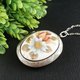 ホワイト ベージュの花のロケット。磁器カメオフォトロケットペンダントネックレス。グレー イエロー オリーブ ベージュ ホワイトフラワー 花柄カメオネックレス。オーバルシルバーヴィンテージ スタイル ビクトリア朝 エポック ロケット ペンダント ネックレス。秘密の願い事キーパーボックス。記念品のネックレス。女性ジュエリー彼女への思い出に残るギフト。