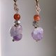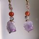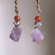 - アメジストクラスター/ハーキマーダイヤモンド/サンストーン編み込みピアス