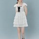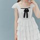 - 胸元は生地をギャザーで寄せ、スカート部分は幾重にも重なるレースのパッチワーク。 レースも特別にオーダーしたもので、ヴィンテージ感のある花柄が特徴です。 スカートのボリュームがたっぷりあるため、パニエやドロワーズと合わせて、お好みのシルエットをお楽しみいただけます。少しふんわり感を加えるだけで、また違った表情を見せてくれます。 胸元のベルベットリボンは取り外し可能です。